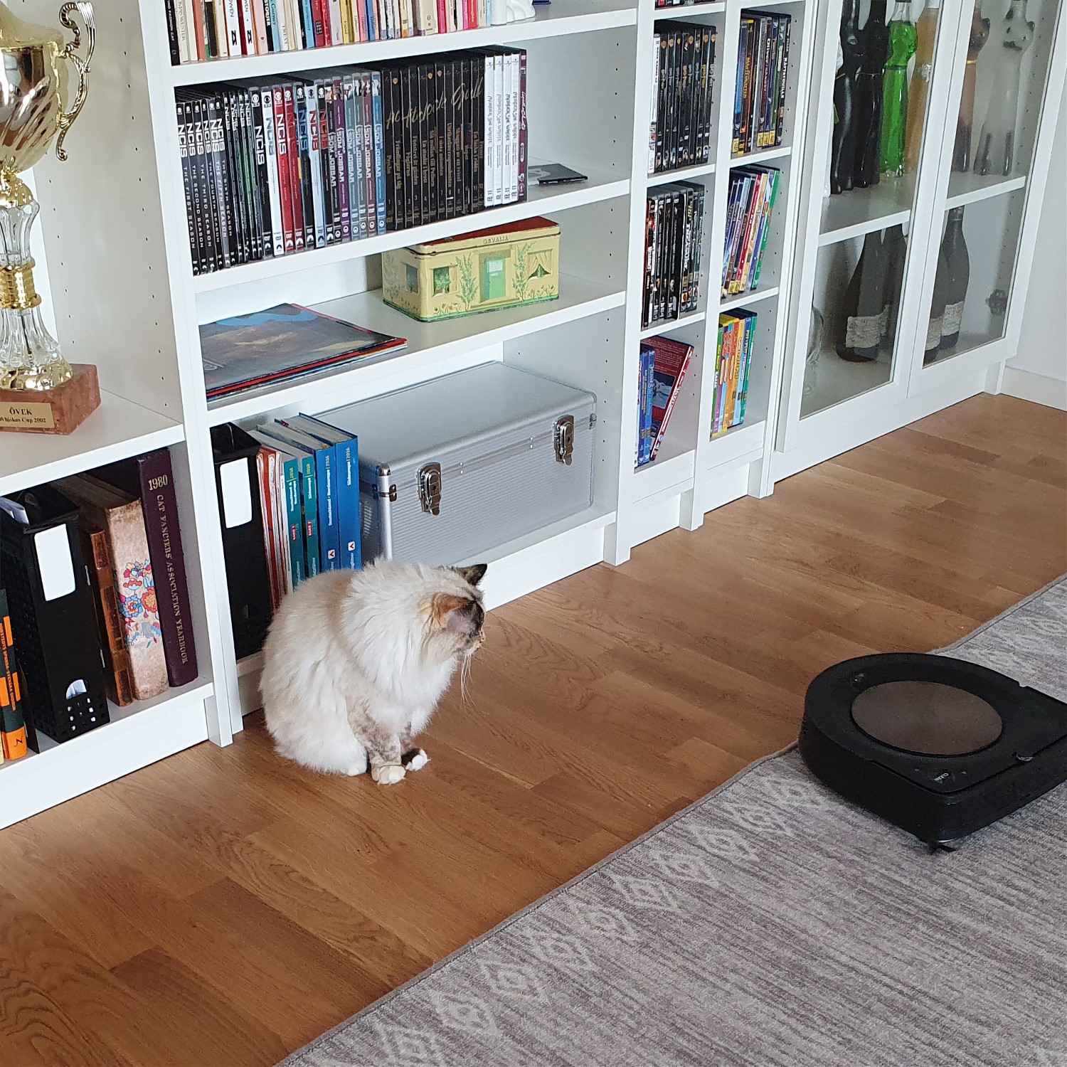 Ett kapitel för sig och här finns många märken som framhäver att just deras produkt är bra för att ta bort katthår. Här får man nog titta lite vad kassan tillåter. En Robi 9i, som här, det vill säga en robotdamsugare som ska vara extra bra när man har djur. Dyson dammsugare också ansedd som bra för djurägare hade vi i husbilen och den fungerar utmärkt som komplement.