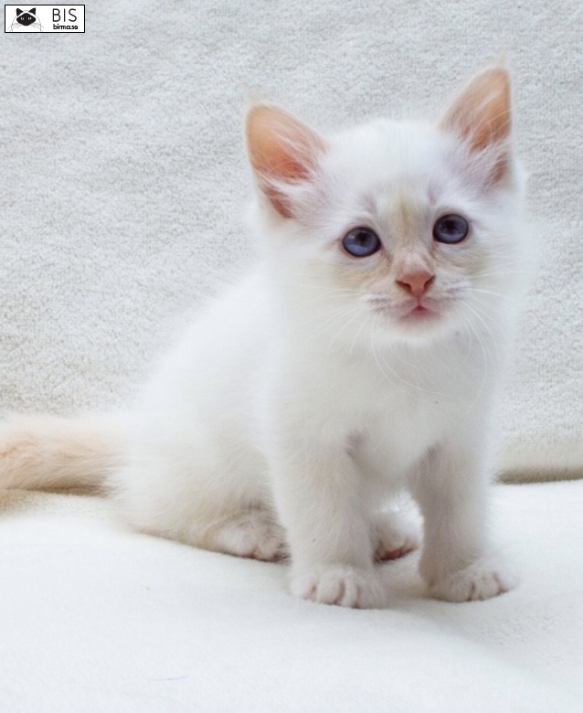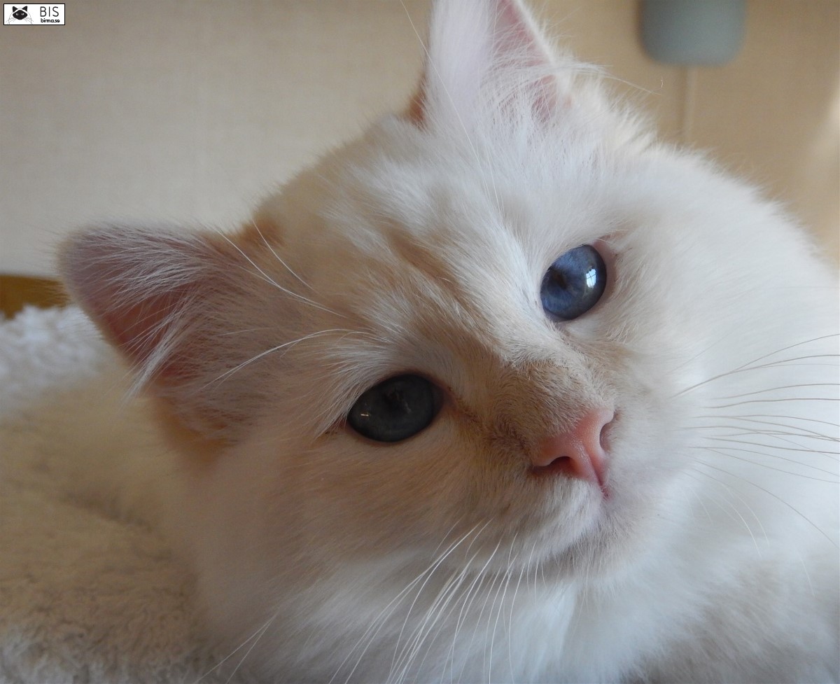 Den crememaskad birma är beige och går mot sandfärg. Masken på en vuxen katt ska vara tät och jämn.